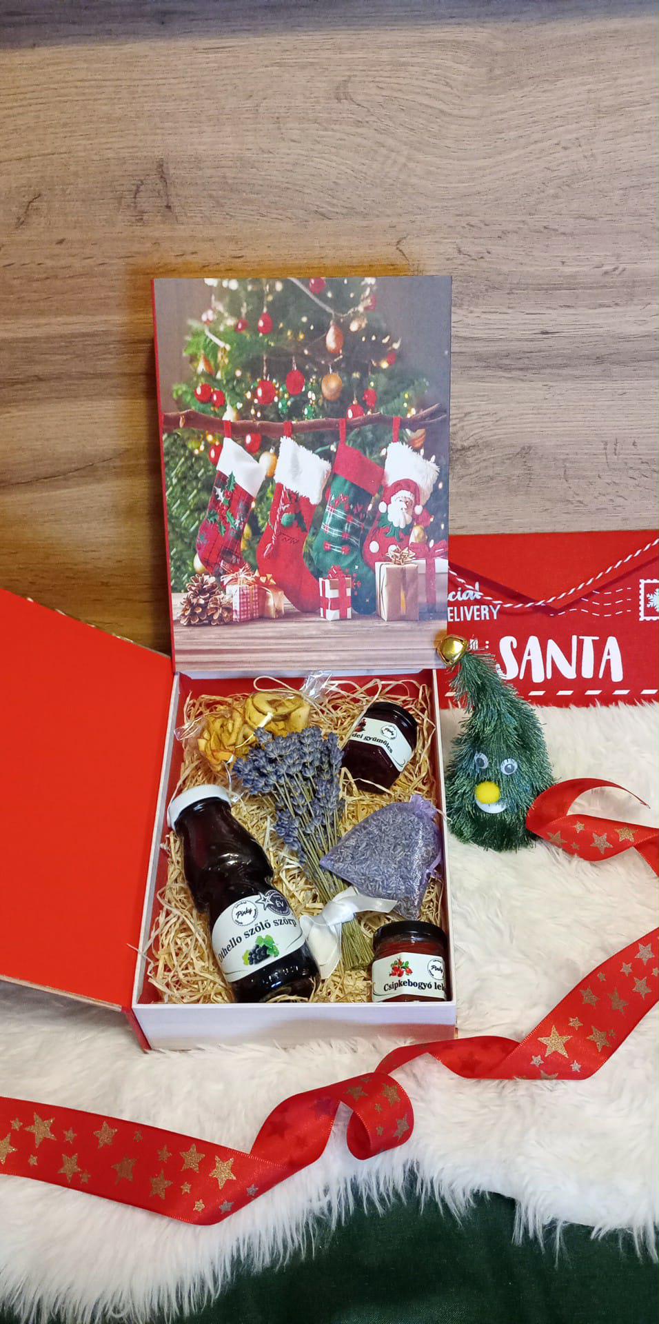 Összetétel: Szakmia Elit Díjjas Othelló szőlő szörp, levendula zsák, csipkebogyó lekvár, erdei gyümölcs dzsem, alma chips, levendula csokor