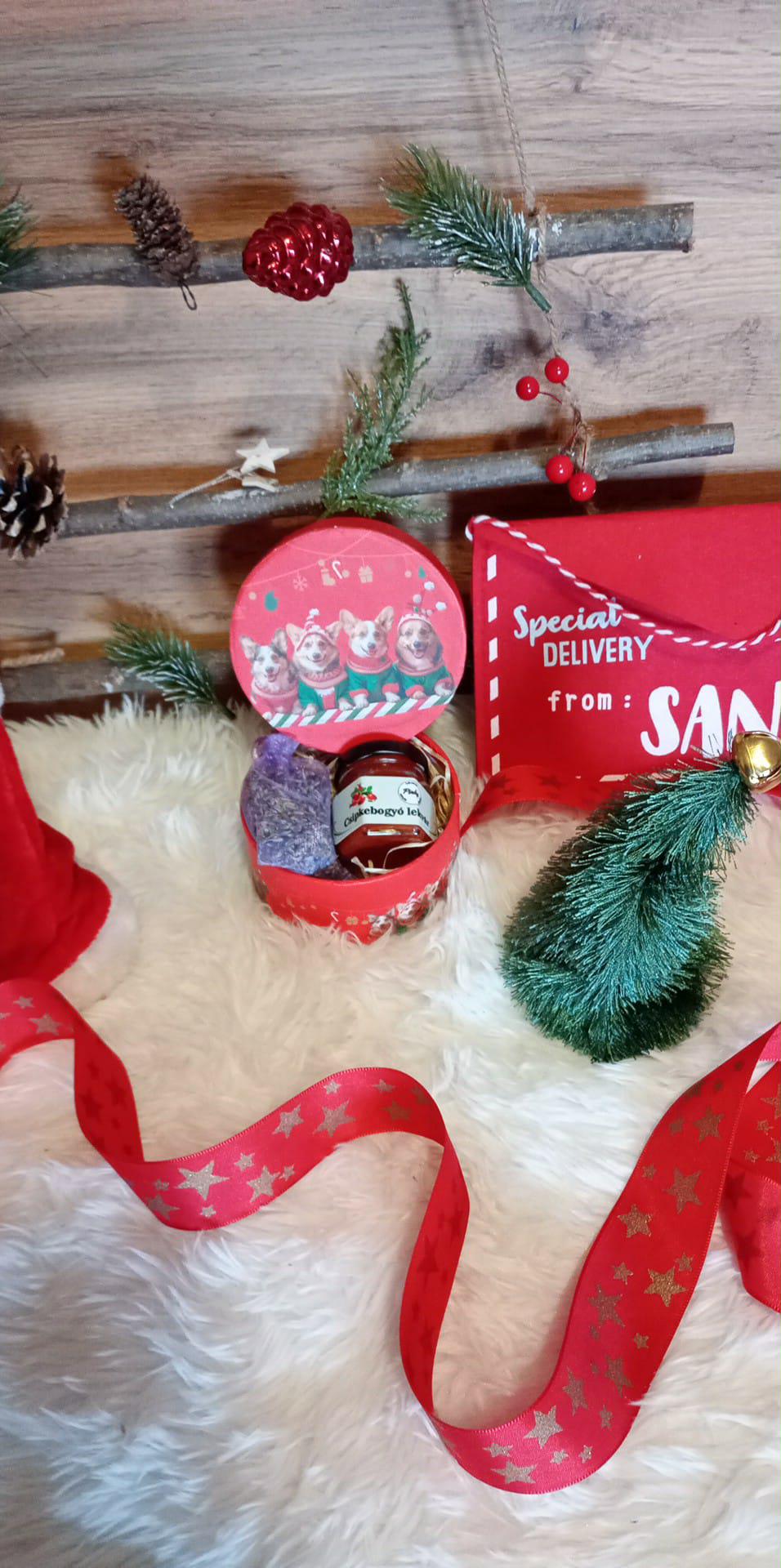 122. Kutyusos karácsonyi dobozka 3 db van készleten