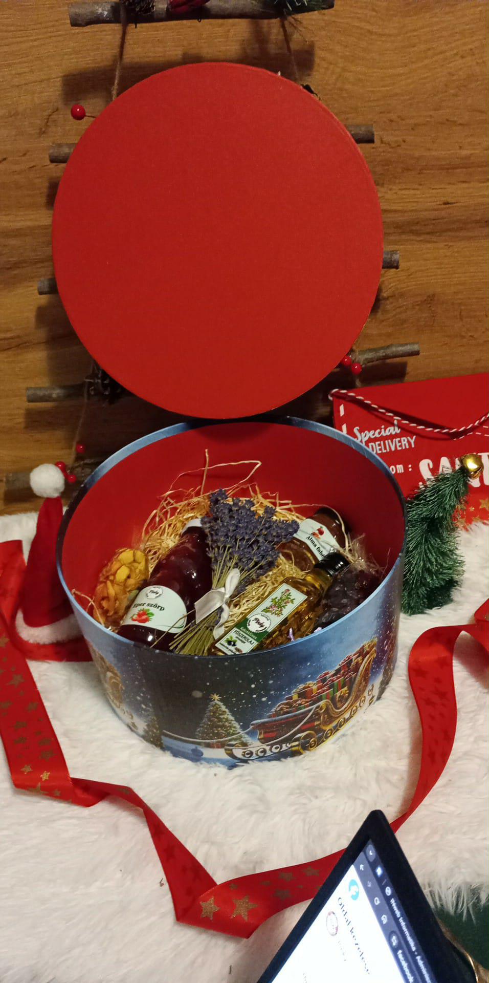 Összetéttel: eper szörp, alma chips, levendula csokor, alma fahéjjal lekvár, levendula zsák, kökény lekvár, szőlőmag őrlemény, kakukkfűves fűszerolaj extra szűz olivaolajjal, száritott csipkebogyó teábe,