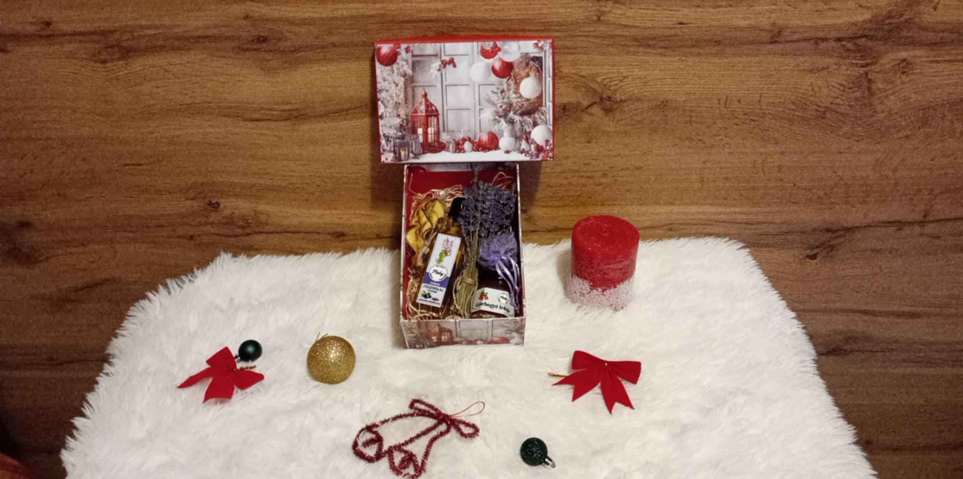 Összetétel: zsályás fűszerolaj extra szűz olívaolajjal, csipkebogyó lekvár, alma chips, levendula zsák, levendula csokor