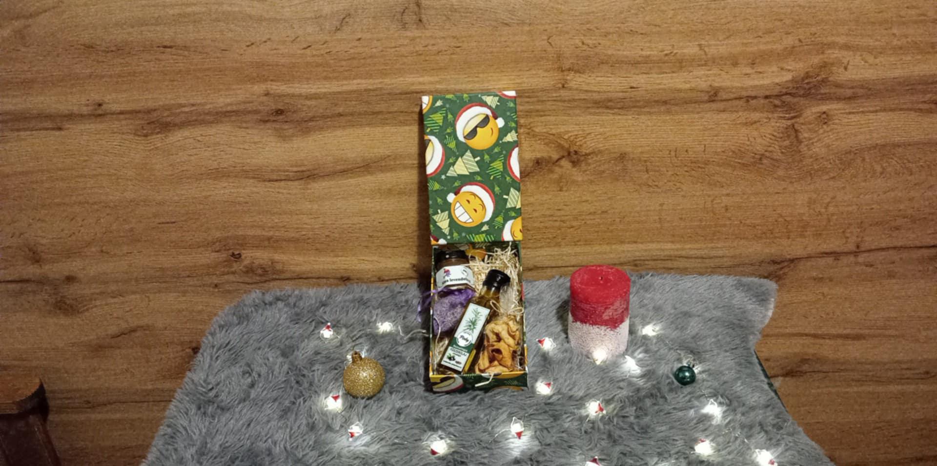 Összetétel: rozmaringos fűszerolaj extra szűz olívaolajjal, alma chips, alma levendulával lekvár, levendula zsák,