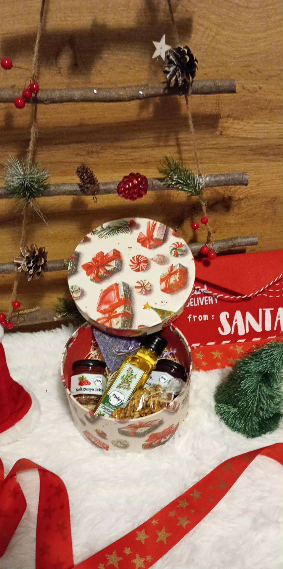 Összetétel: kakukkfűves fűszerolaj extra szűz olívaolajjal, galagonya lekvár, levendula zsák, dió, kökény lekvár,