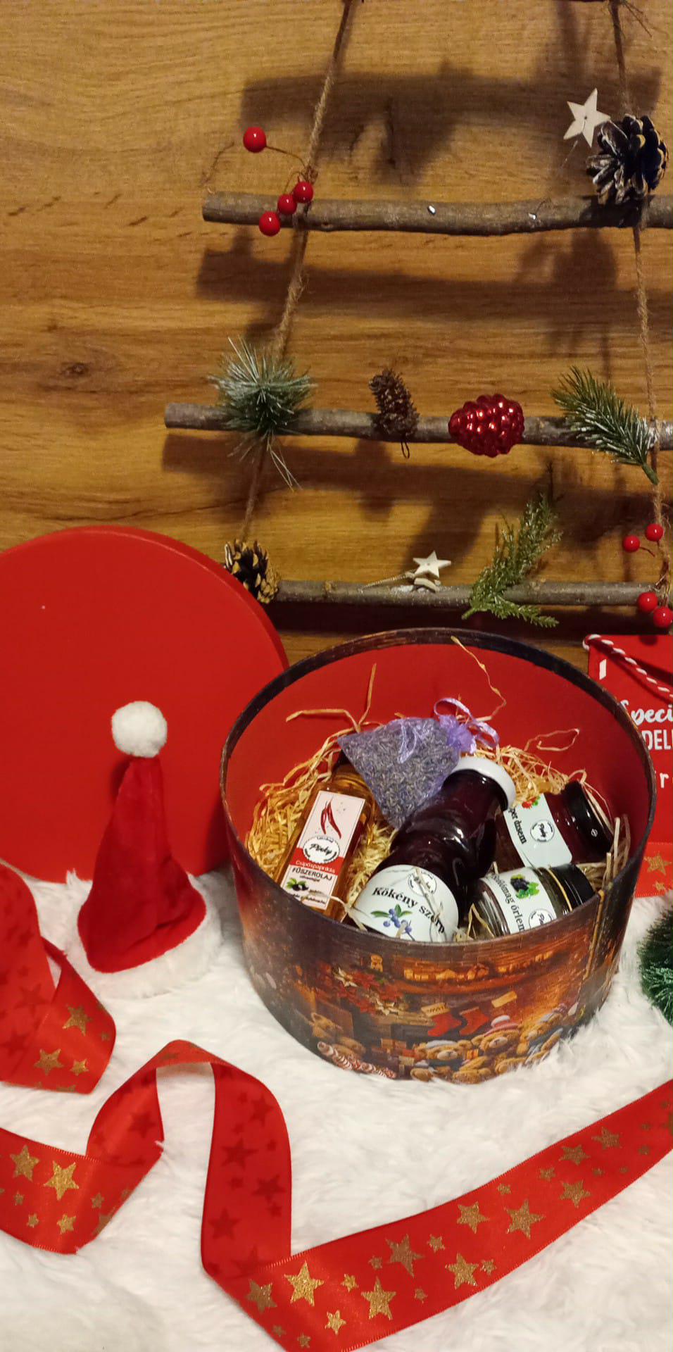 Összetétel: kökény szörp,chilis fűszerolaj extra szűz olivaolajjal, alma chips, levendula zsák, eper dzsem, szőlőmag őrlemény