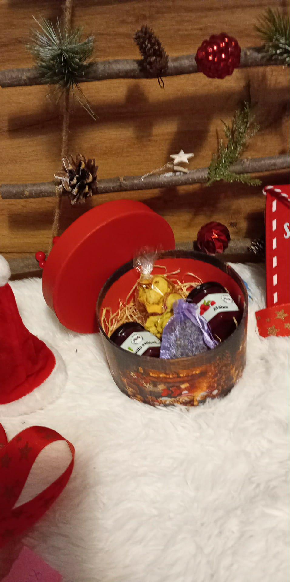 Összetétel: málna lekvár, alma chips,birsalma lekvár othelló szőlővel,levendula zsák,