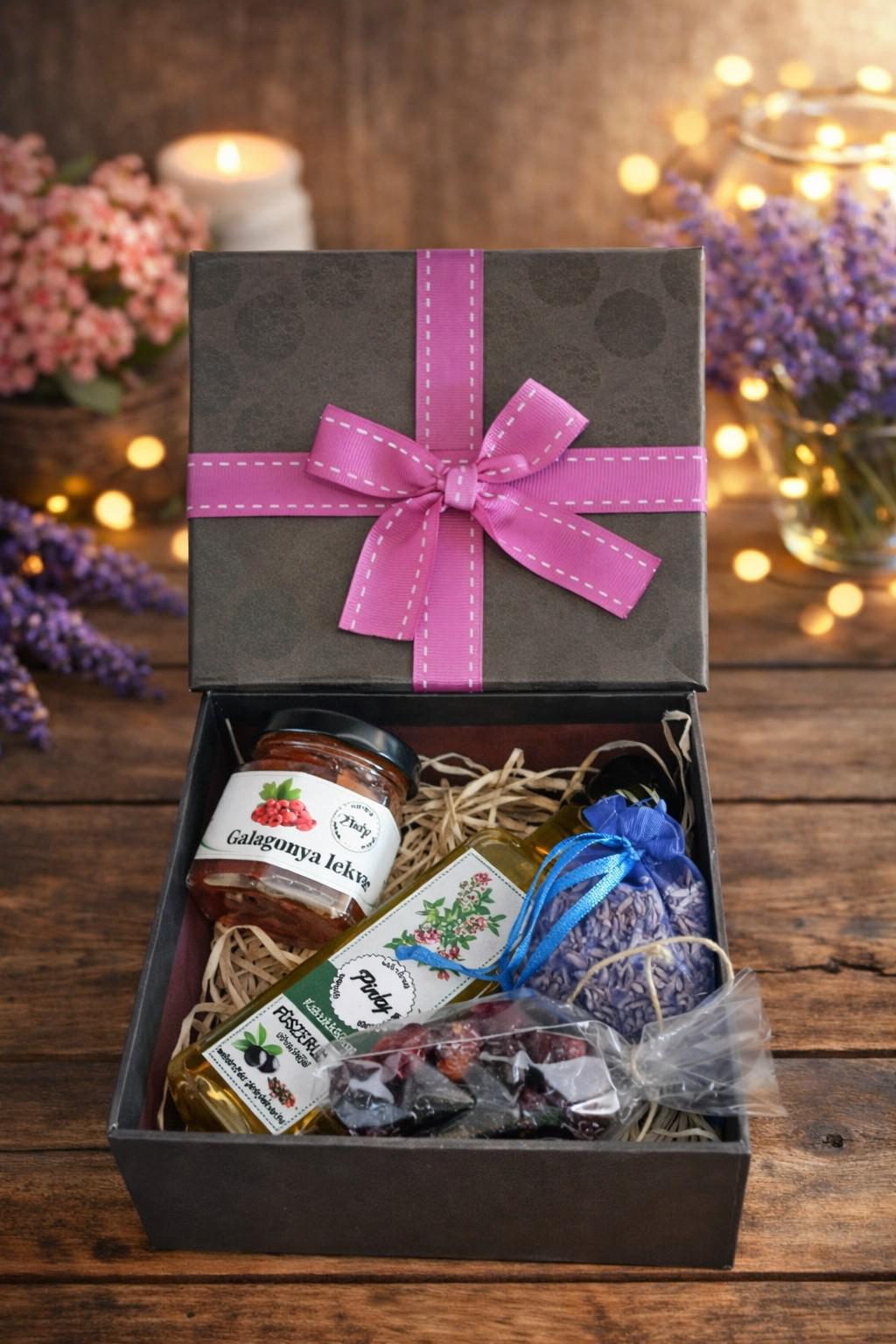 Összetétel: Kakukkfűves fűszerolaj extra szűz olívaolajjal, galagonya lekvár, szárított csipkebogyó, levendula zsák