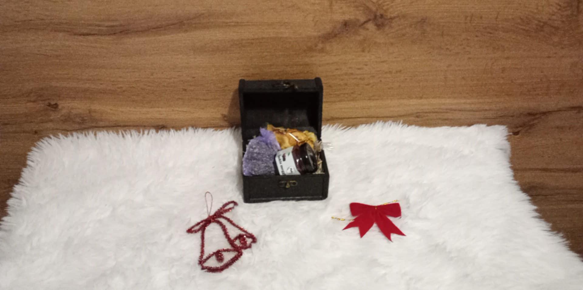 Öszetétel: csokis meggy dzsem, levendula zsák, alma chips,