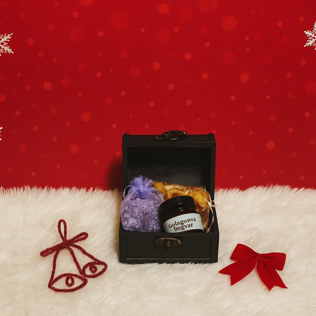 Öszetétel: galagonya lekvár, levendula zsák, alma chips,