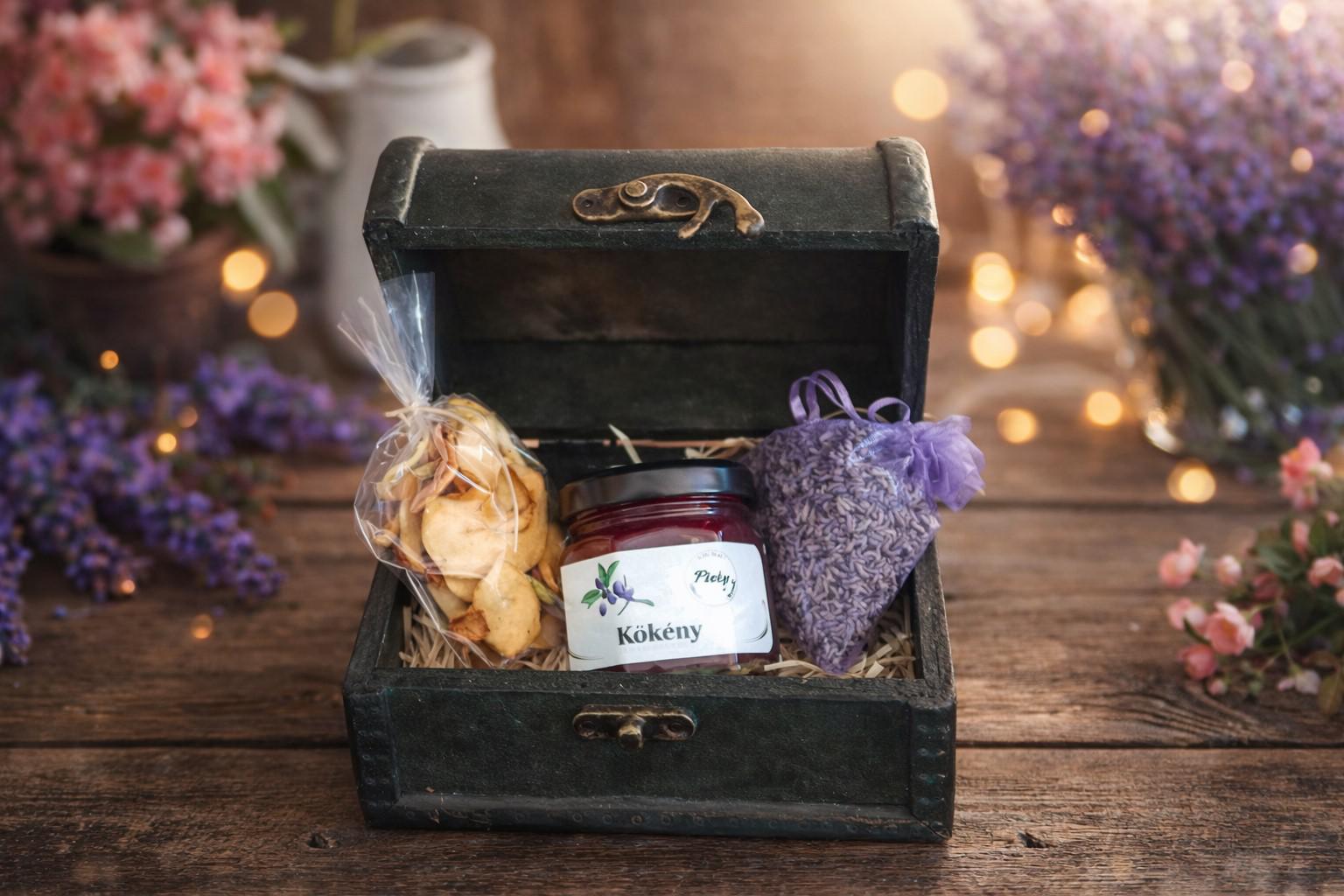 Öszetétel: kökény lekvár, levendula zsák, alma chips,